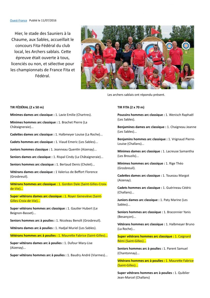 FITA - FEDERAL 2016 AUX SABLES D'OLONNE