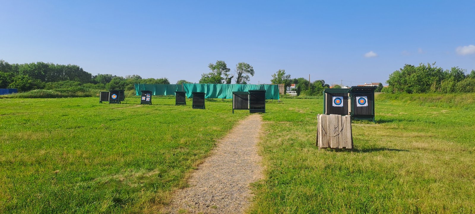 Terrain de tir avec 11 cibles à toutes les distances, (2x20m, 2x30m, 40m, 4x50m, 60m, 70m).